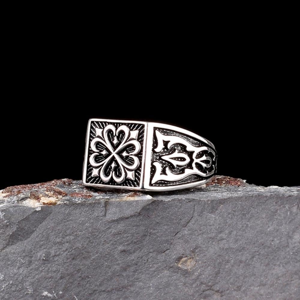 • Materyal: 925 Ayar Gümüş • Model: Kare Desen Model Erkek Yüzük • Ebat: 8,5 x 8,5 mm • Ağırlık: Ortalama 7 gr (El işçiliği nedeniyle %10 farklılık olabilir) • İşçilik: El yapımı, detaylı desen işçiliği • Kutu İçeriği: Diriliş Takı özel hediye kutusu + gümüş parlatma bezi • Kullanım: Günlük ve özel günlerde kullanım için ideal