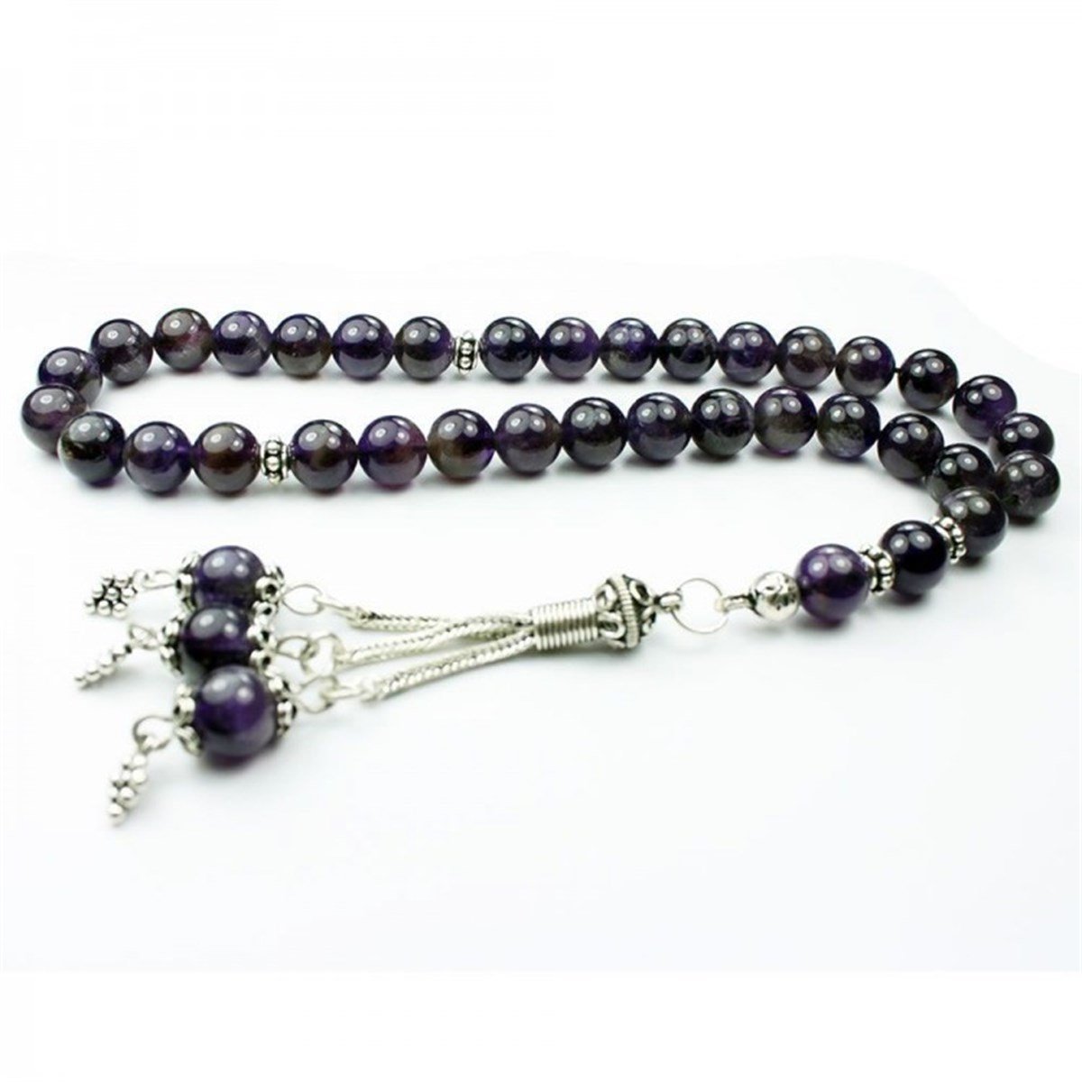 925 Ayar Gümüş %100 Doğal Ametist Taşı Tesbih