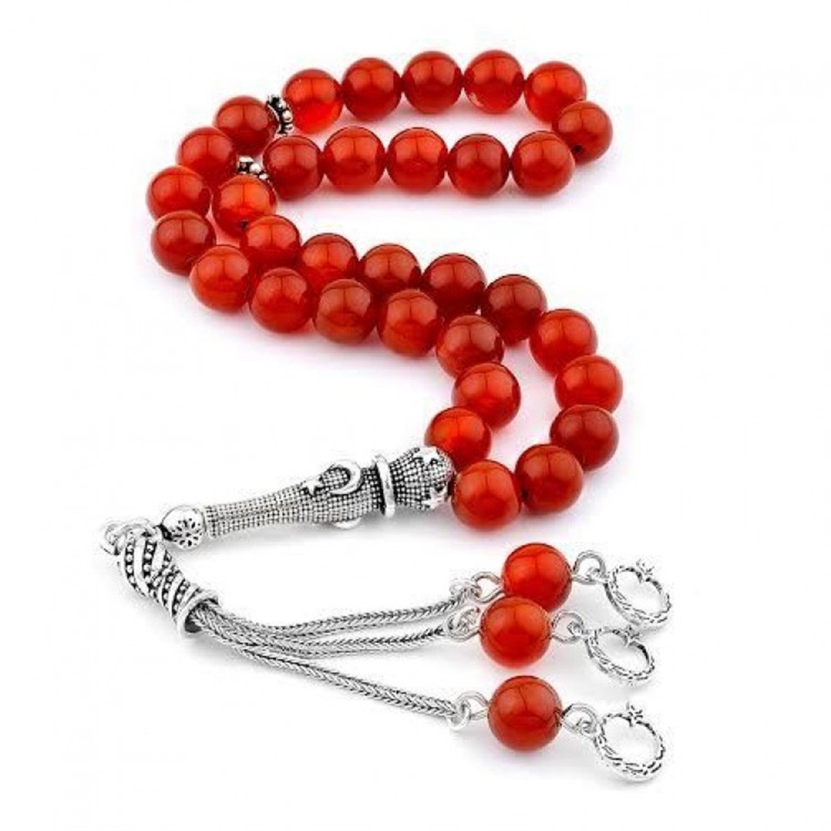 925 Ayar Gümüş Ayyıldız Model Akik Taşlı Tesbih
