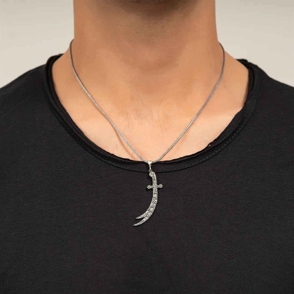 • Model Name: Sword Pendant Necklace • Gender: Male / Female • Material: 925 Sterling Silver • Pendant size: 49 mm • Product Weight: 8-9 gr • Leabor: Handmade • Necklace length: