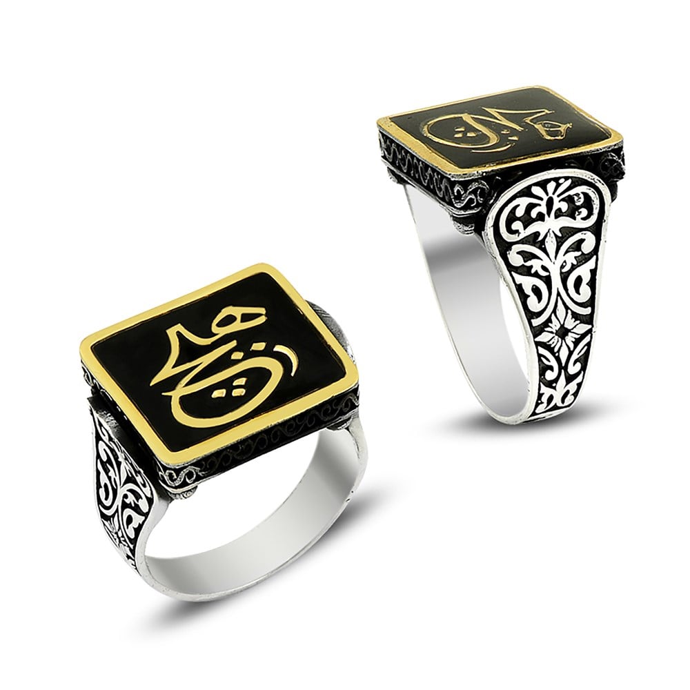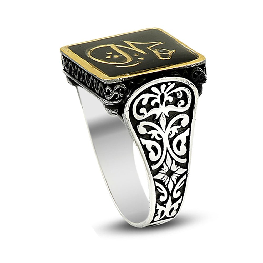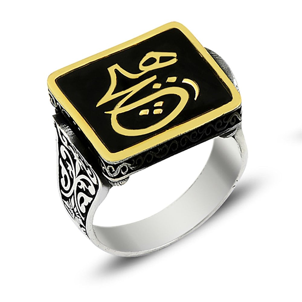 Arapça Hiç Yazılı Mineli Gümüş Yüzük (DEY1312)