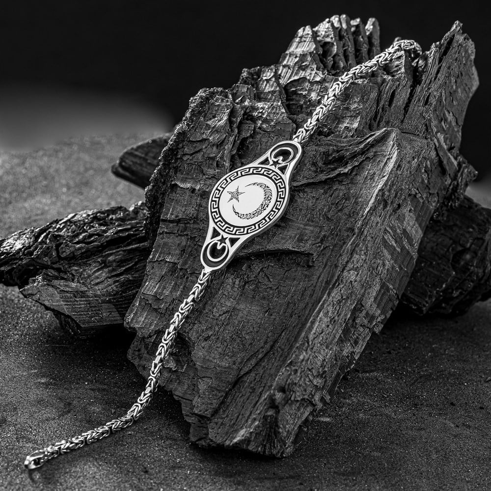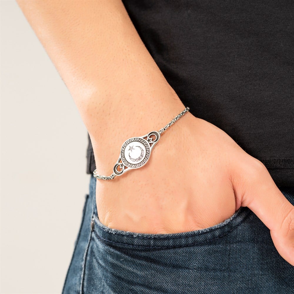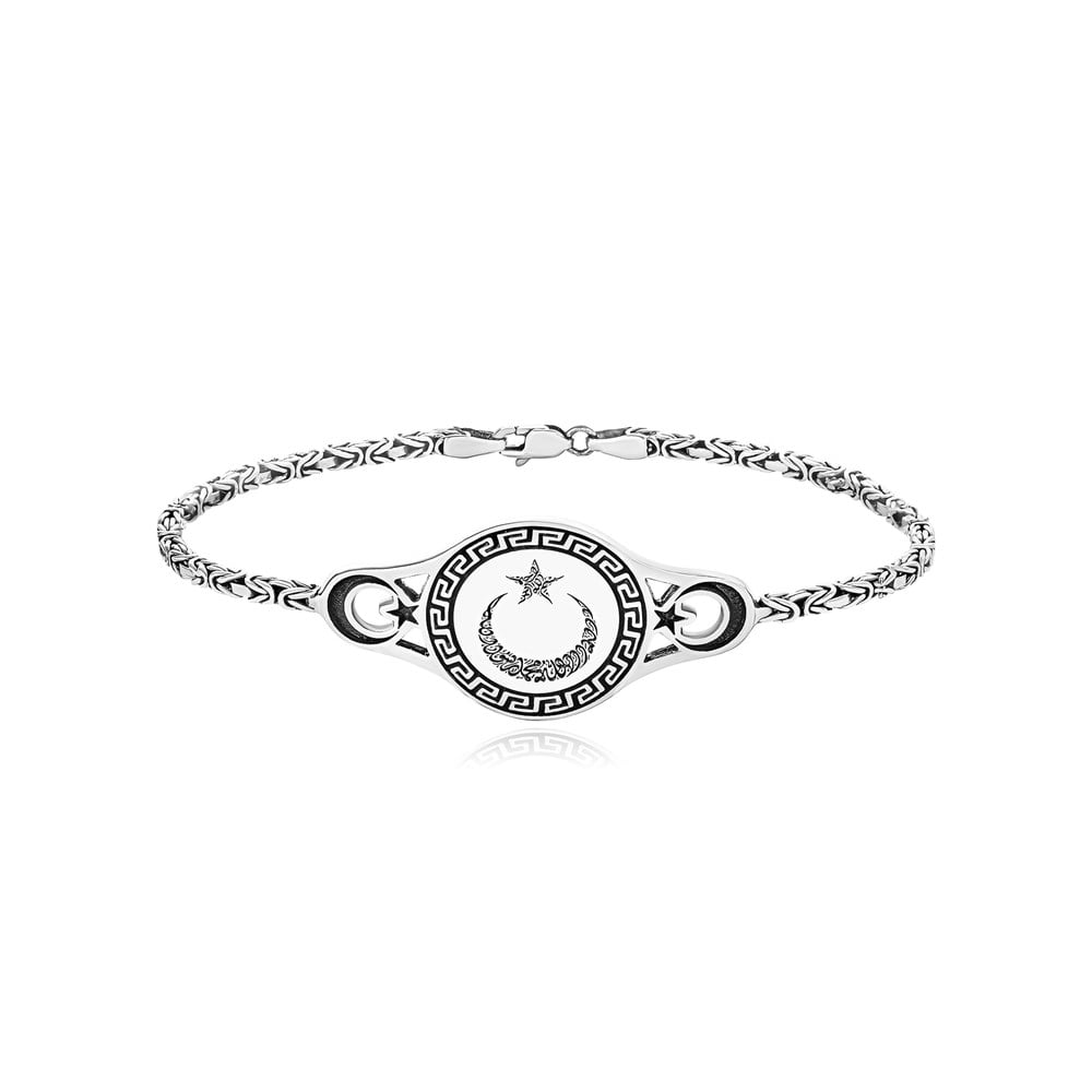 Ay Yıldız Kelime-i Tevhid İşlemeli Kral Gümüş Bileklik