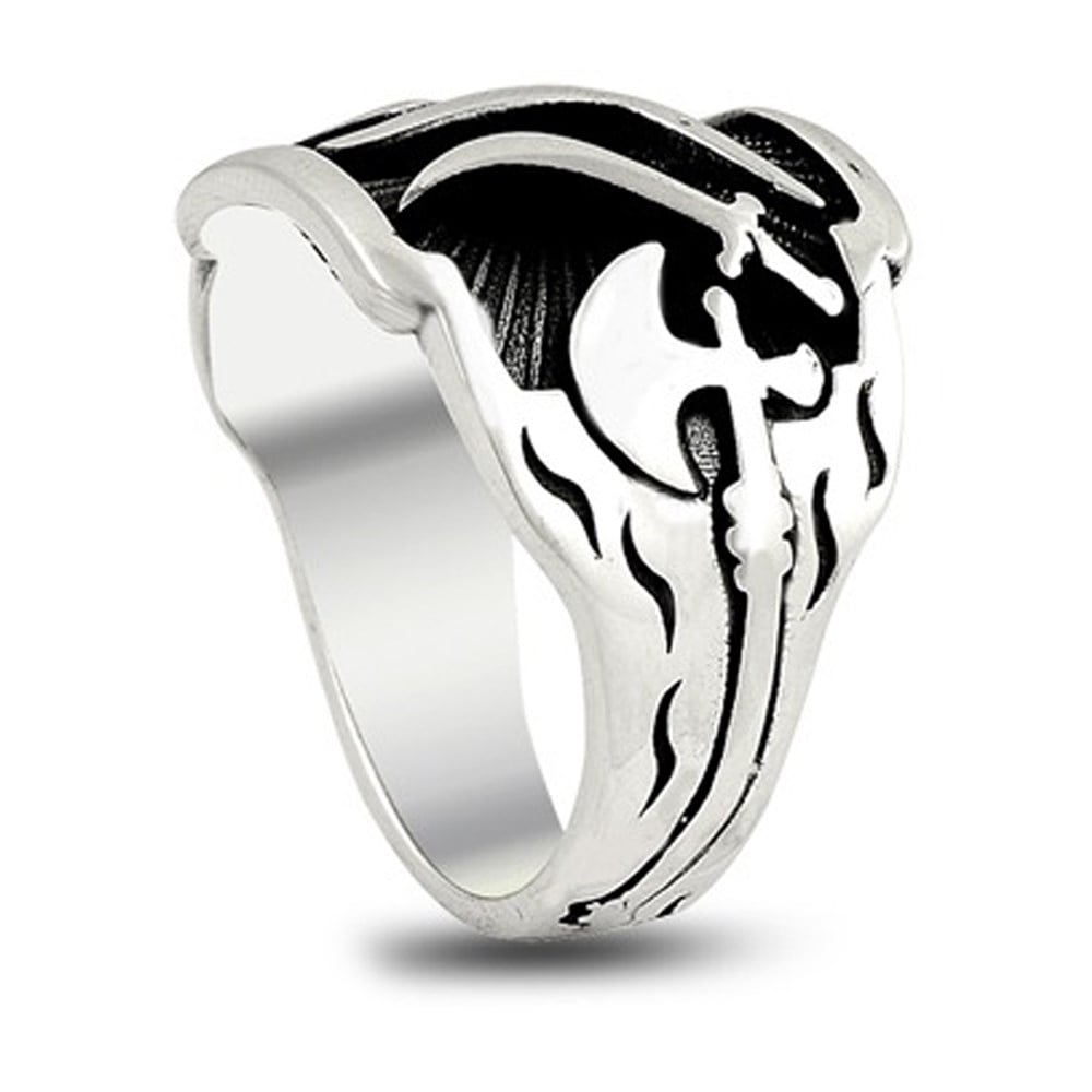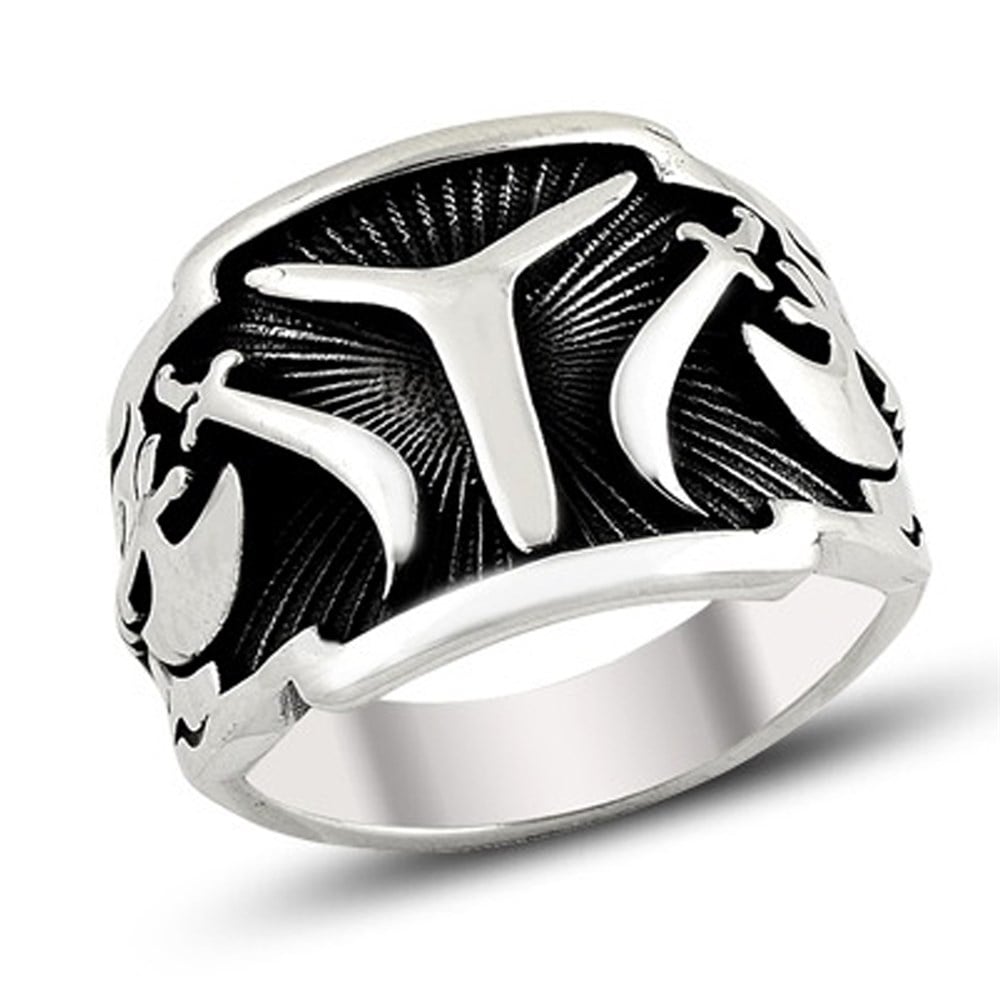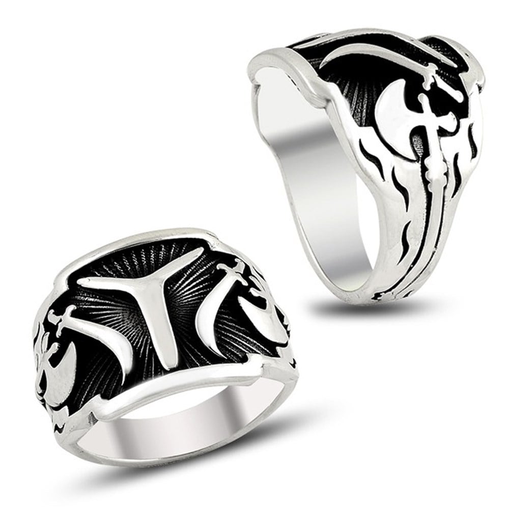 Balta Motifli Kayı Boyu Armalı IYI Gümüş Erkek Yüzük