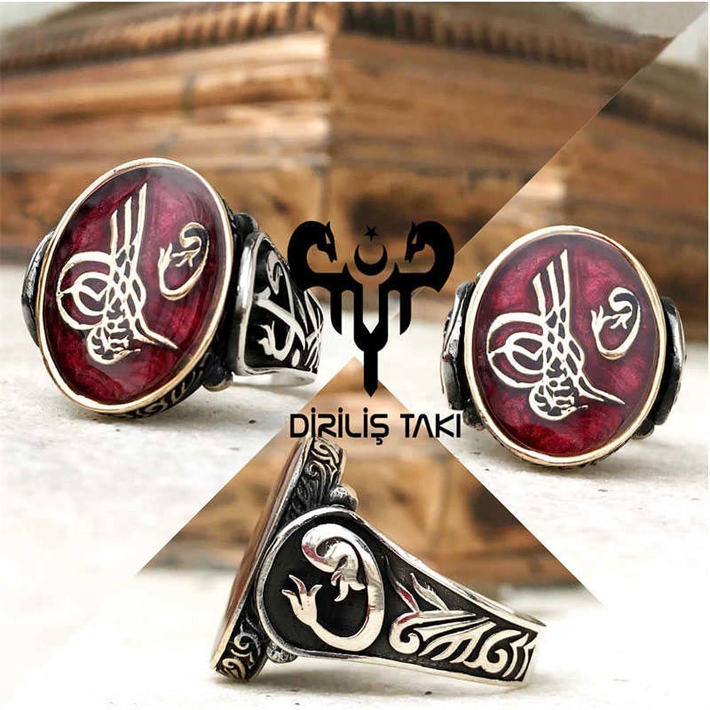 Fatih Sultan Mehmet Gümüş Erkek Yüzük Kırmızı
