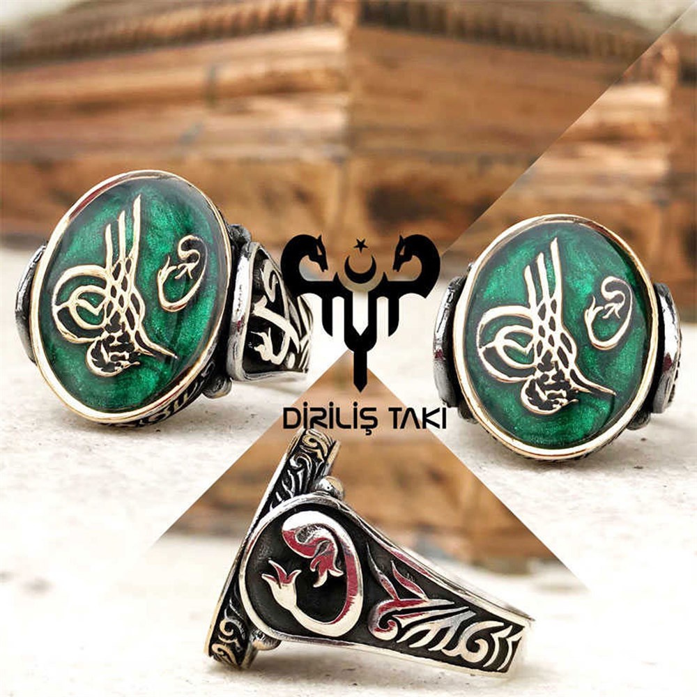 Fatih Sultan Mehmet Gümüş Erkek Yüzük Yeşil