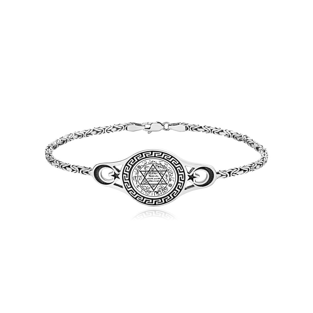Hazreti Süleyman Mührü İşlemeli Kral Gümüş Bileklik