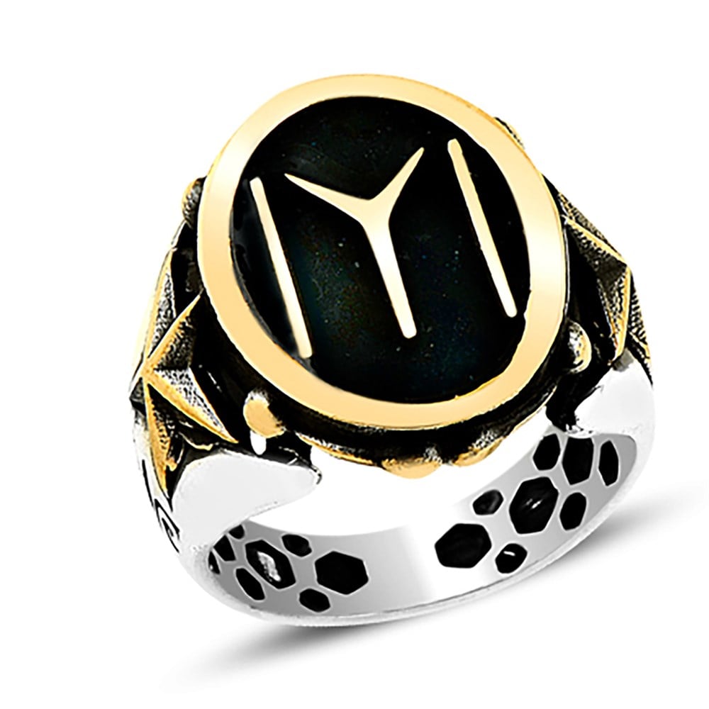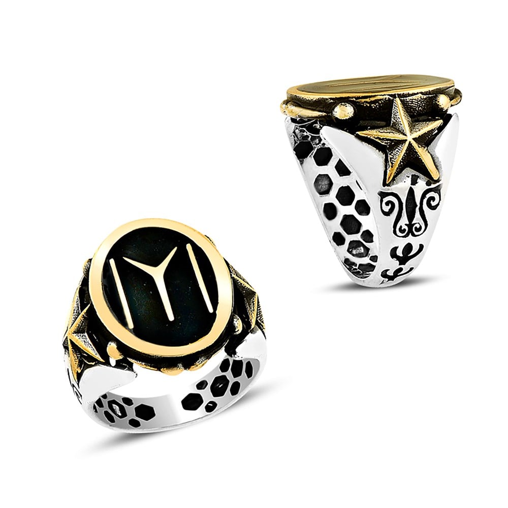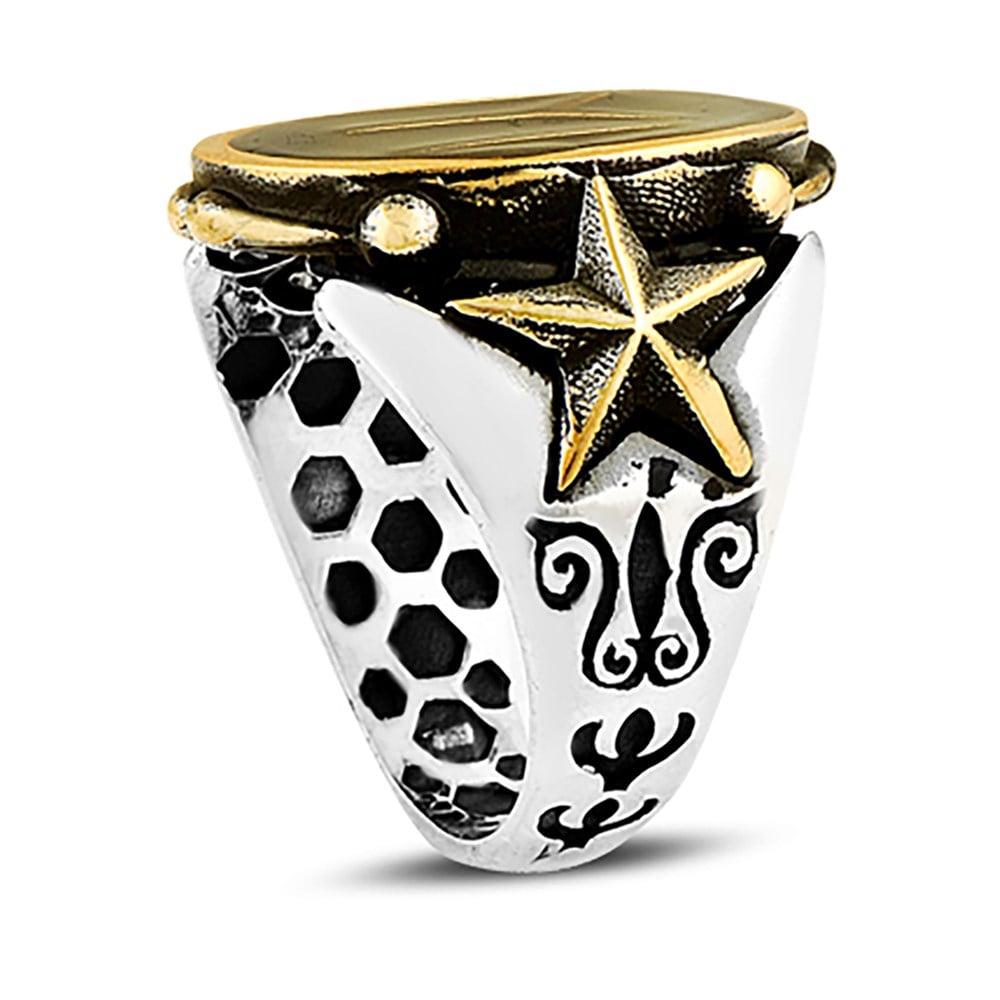 Kayı Boyu Armalı Kenarı Yıldız Desenli Gümüş Yüzük (DEY1316)