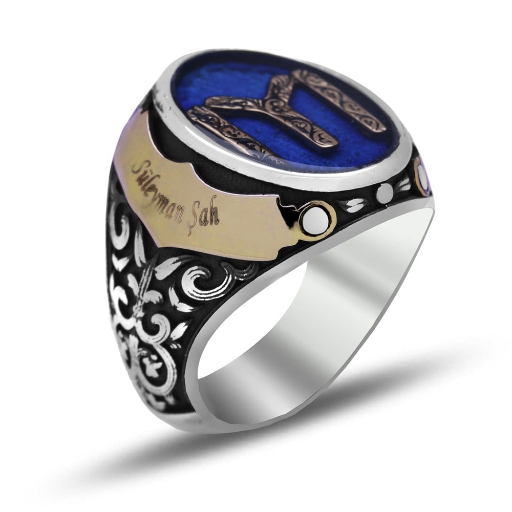 Kayı Boyu Motifli Mineli Gümüş Erkek Yüzük