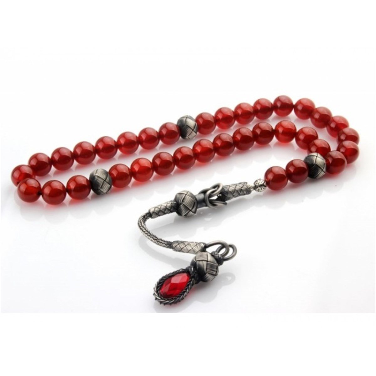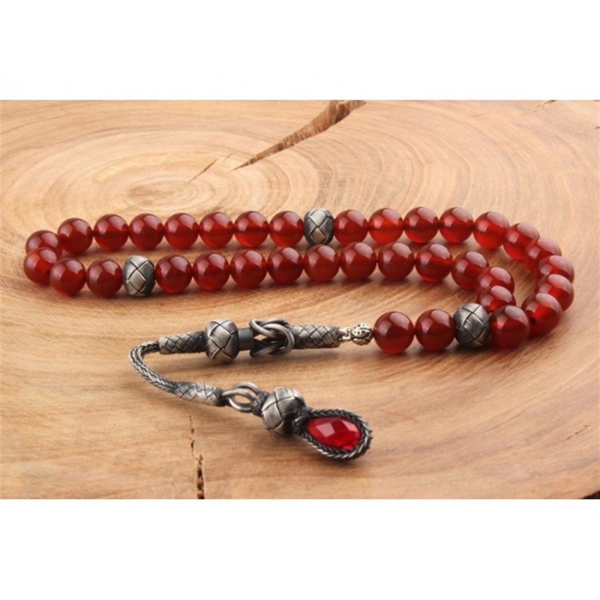Kırmızı Akik Taşı Gümüş Kazaziyeli Model Tesbih