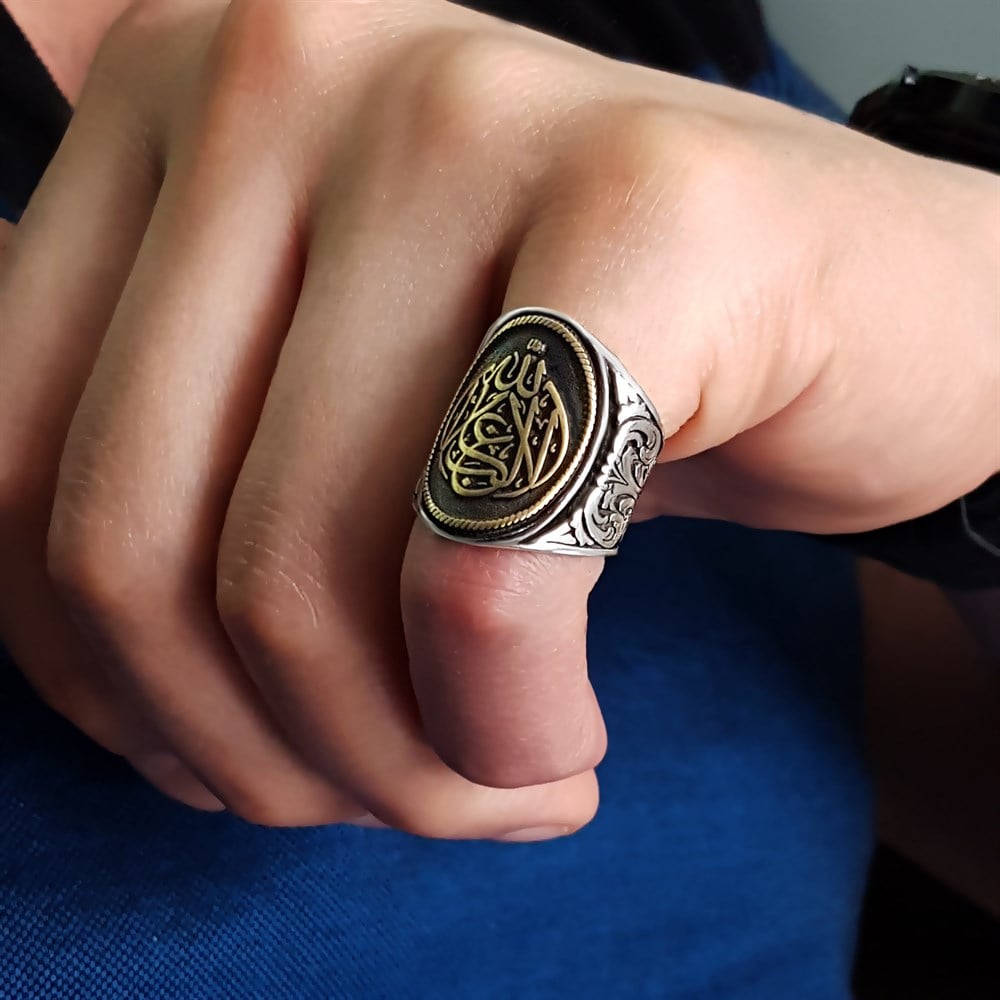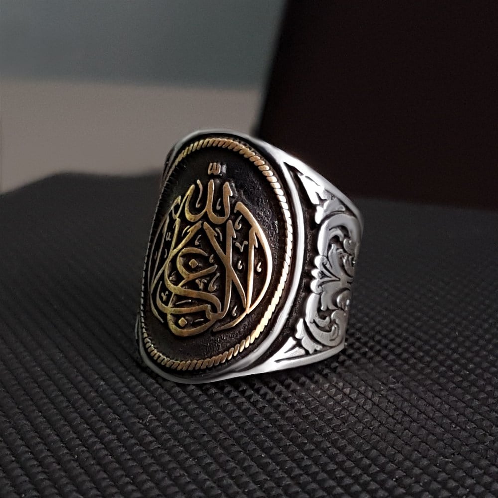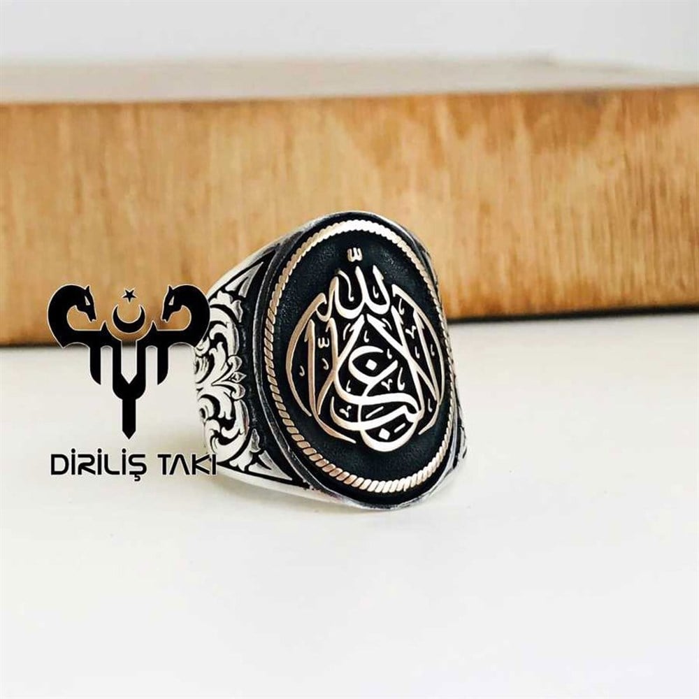 The 925 carat handmade silver ring with the inscription La galibe illallah (There is no winner but Allah) is . It represents the surrender of Muslims to their beliefs. This wonderful ring, completed with the fine workmanship on the sides, is very suitable as a gift for father, uncle, grandfather, boyfriend.