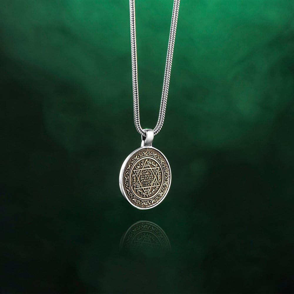 Üzerinde bu mührün nakşedildiği yüzüğü önce Hazret-i Adem (a.s)'ın kullandığı ve yeryüzüne getirirken cennette bıraktığı, sonrasında Hazret-i Cebrail (a.s) tarafından Allah'ın izniyle Hz. Davud (a.s)'a ve en nihayetinde, liyakat gözetilerek Oğlu Hazret-i Süleyman (a.s)'a verdildiği rivayet edilmektedir. Yüce Allah'ın sıfatlarını sembolize eden bu yıldız veya mühür, her şeyden önce Rahmani bir sembol veya remzdir. Ayrıca bir sürü kavramı da temsil eder. Mührü Süleyman kolye modelindeki sembolün Allah'tan olduğunu kanıtlayan en büyük delil, bir kar tanesinde nakşedilmiş olmasıdır.