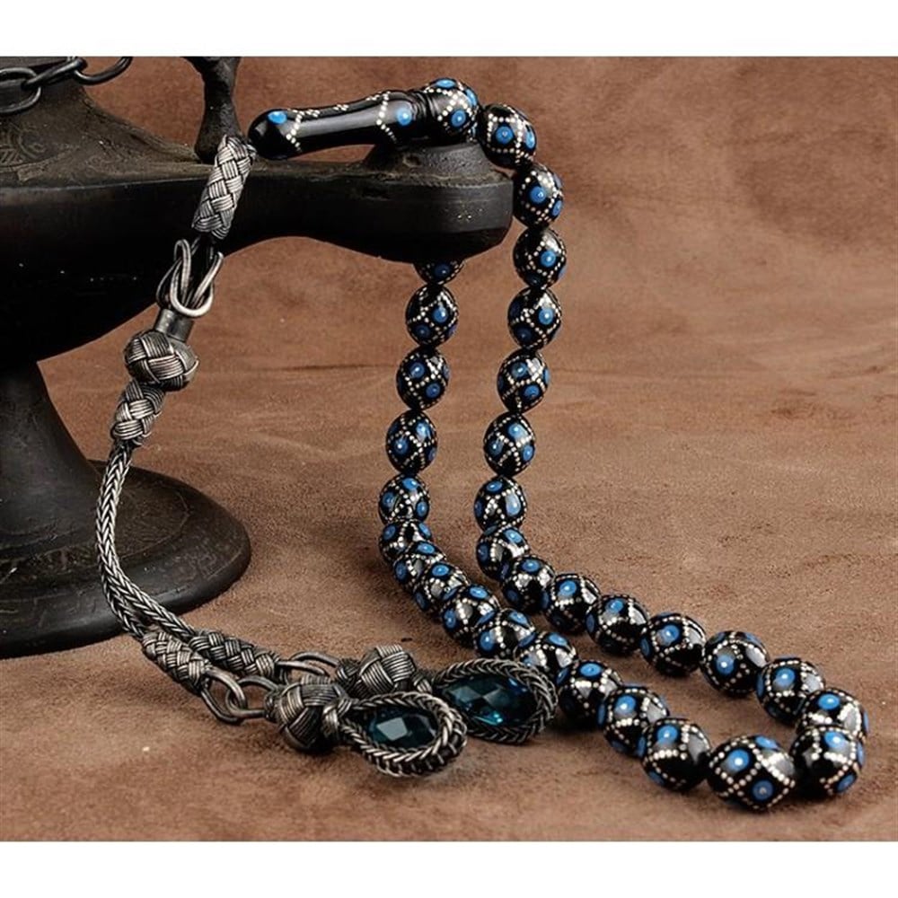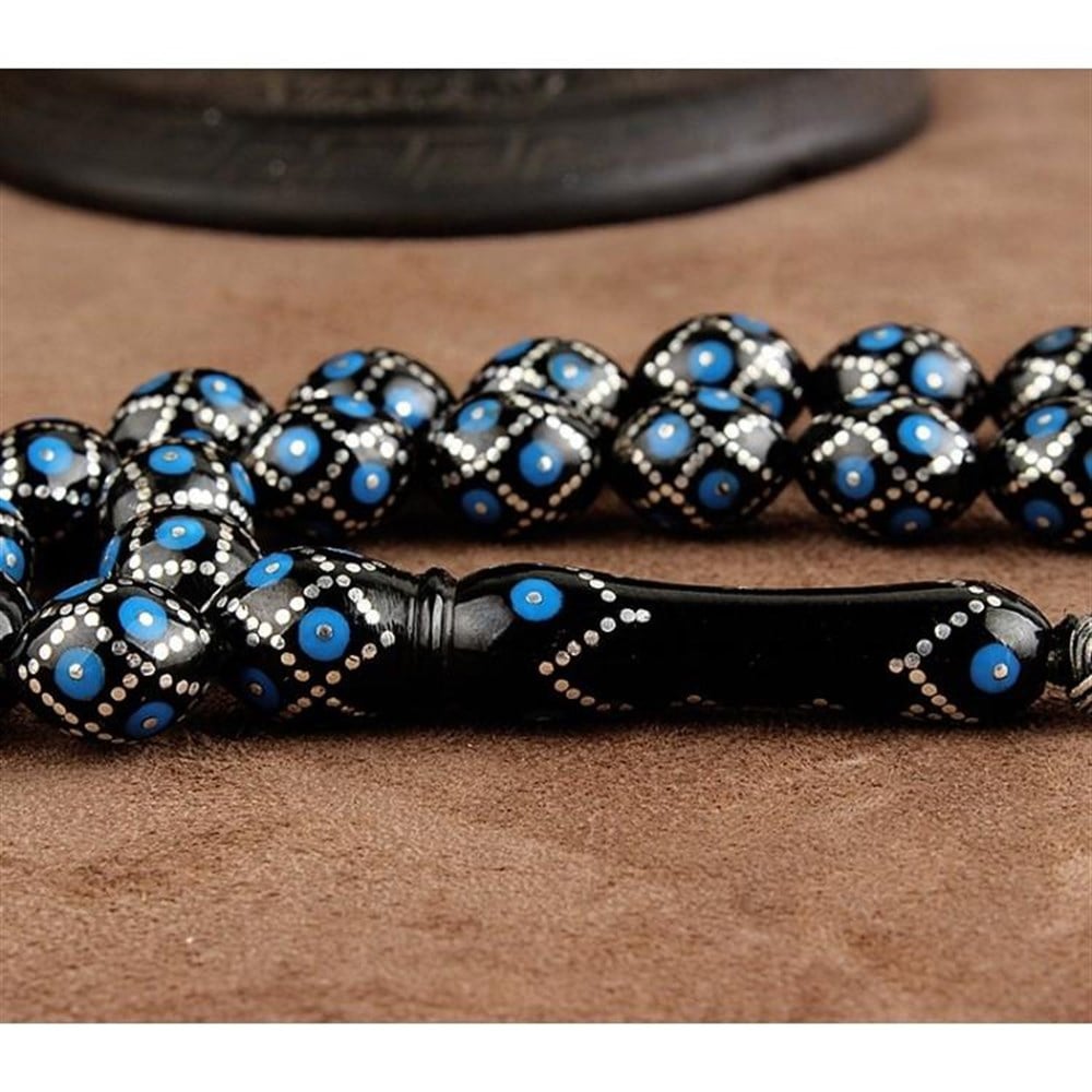 Orjinal Erzurum Oltu Taşı Üzeri Mine ve Gümüş İşlemeli Tesbih Özellikleri;