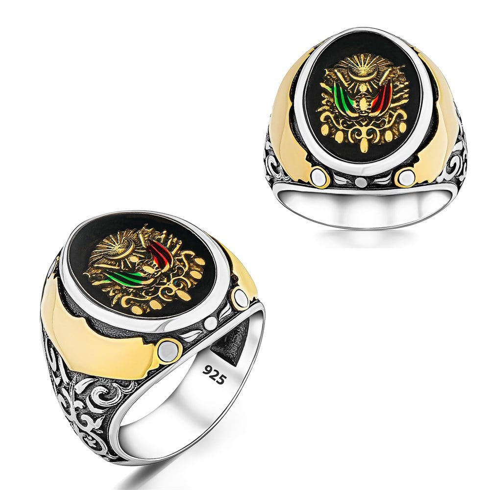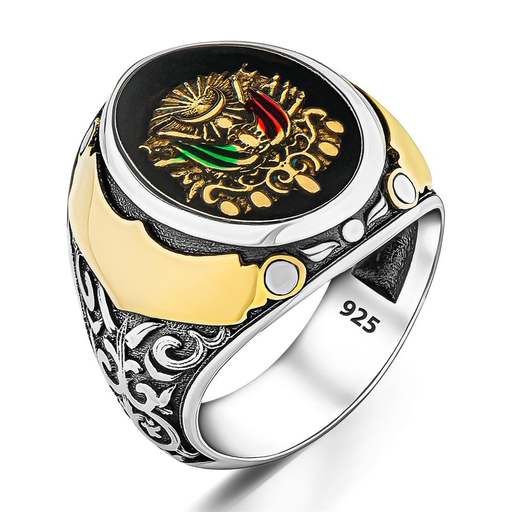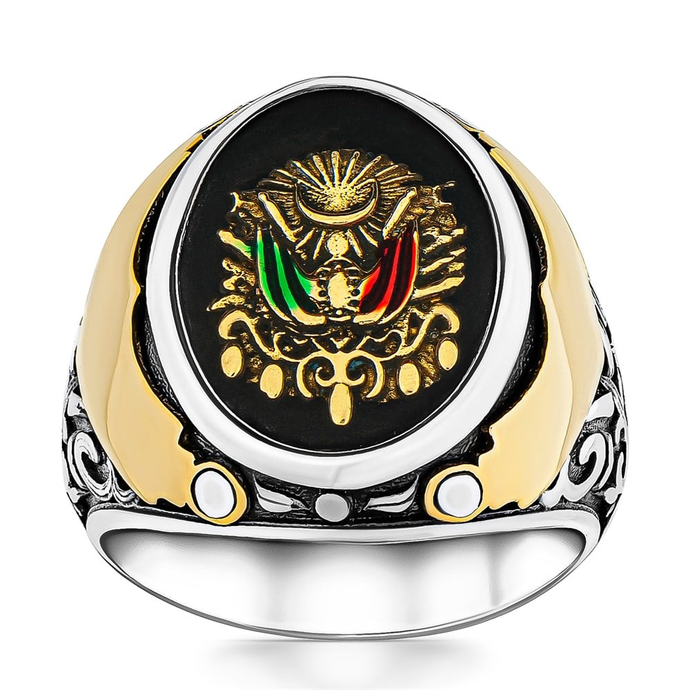 Osmanlı Armalı Kenar Kısımları İsim Yazılabilir Gümüş Erkek Yüzük