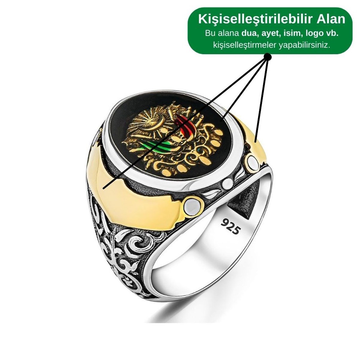 Osmanlı Armalı Kenar Kısımları İsim Yazılabilir Gümüş Erkek Yüzük (DEY01332)