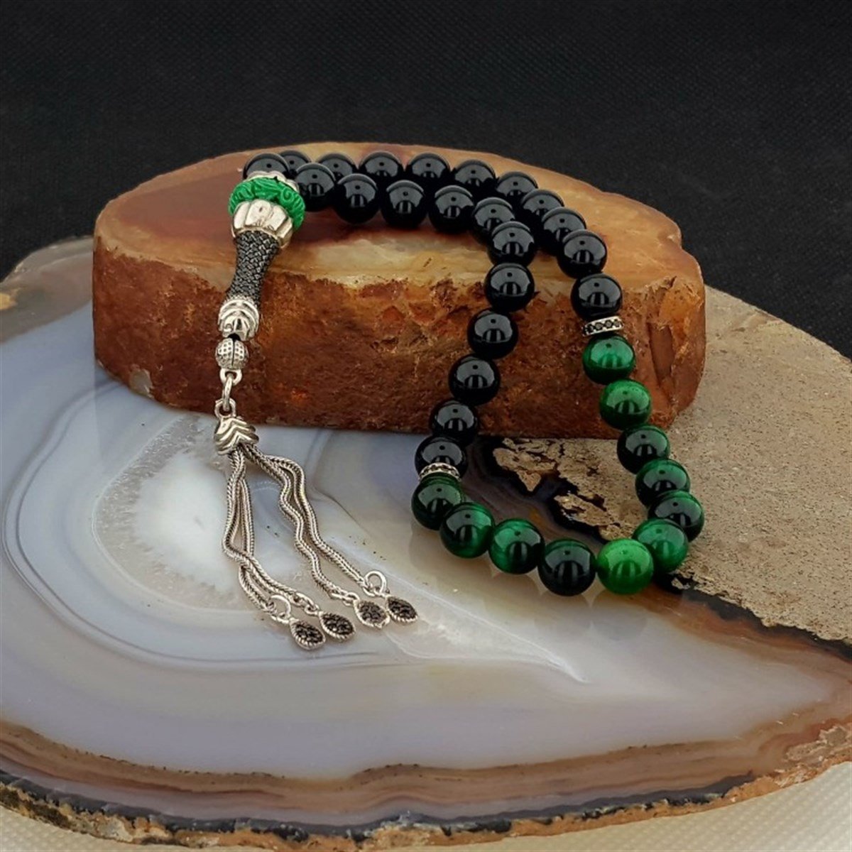 Özel Tasarım İmame Ve Püsküllü Oniks Kaplan Gözü Taşlı Tesbih