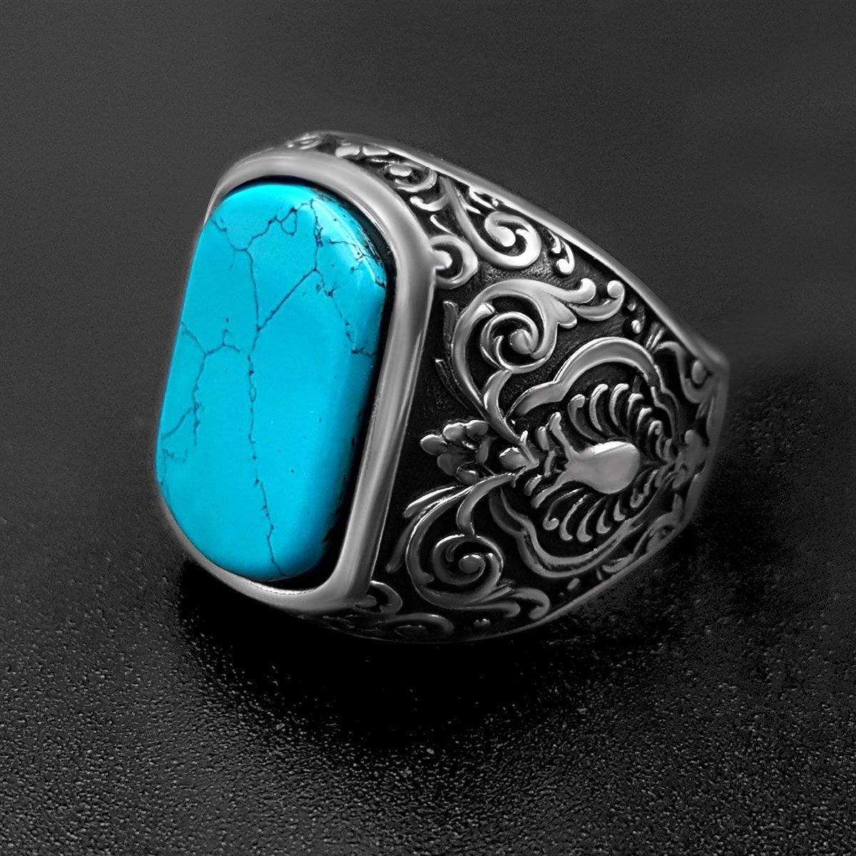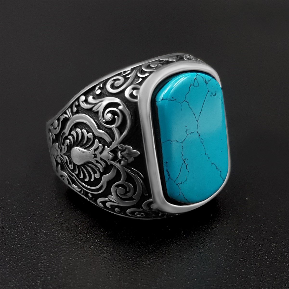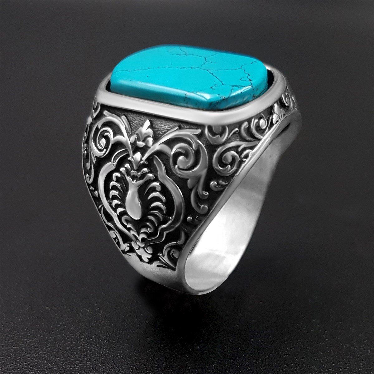 Selçuklu Motifli Firuze Taşlı Gümüş Yüzük Özellikleri :