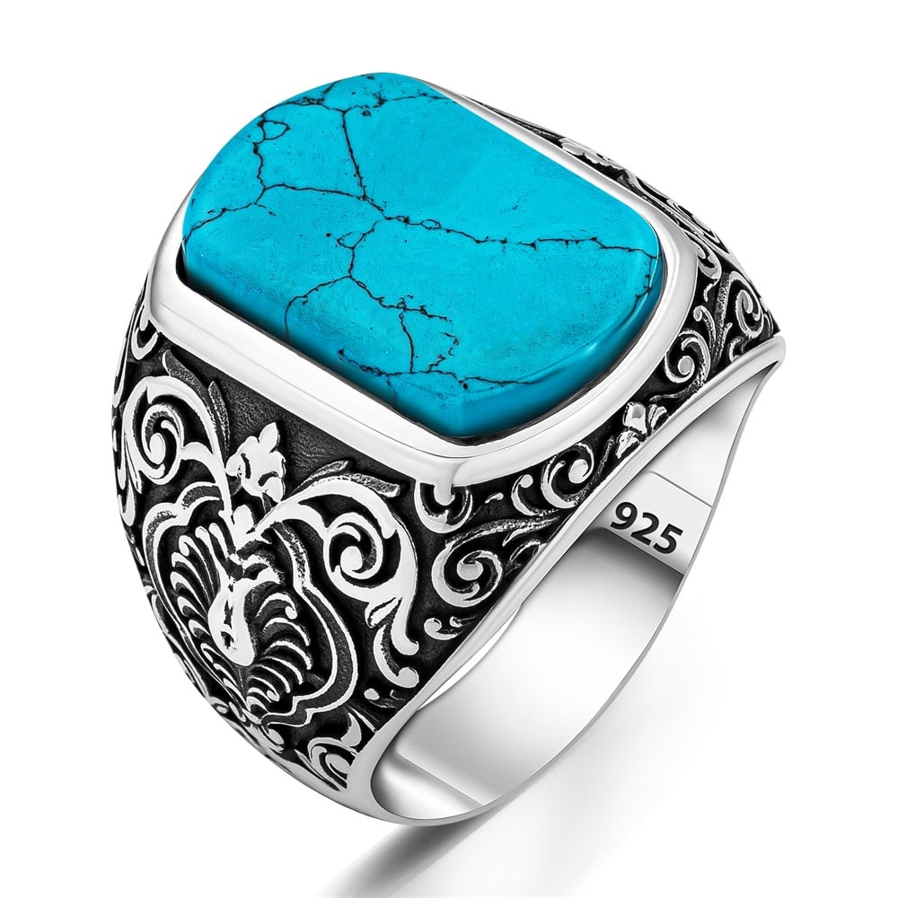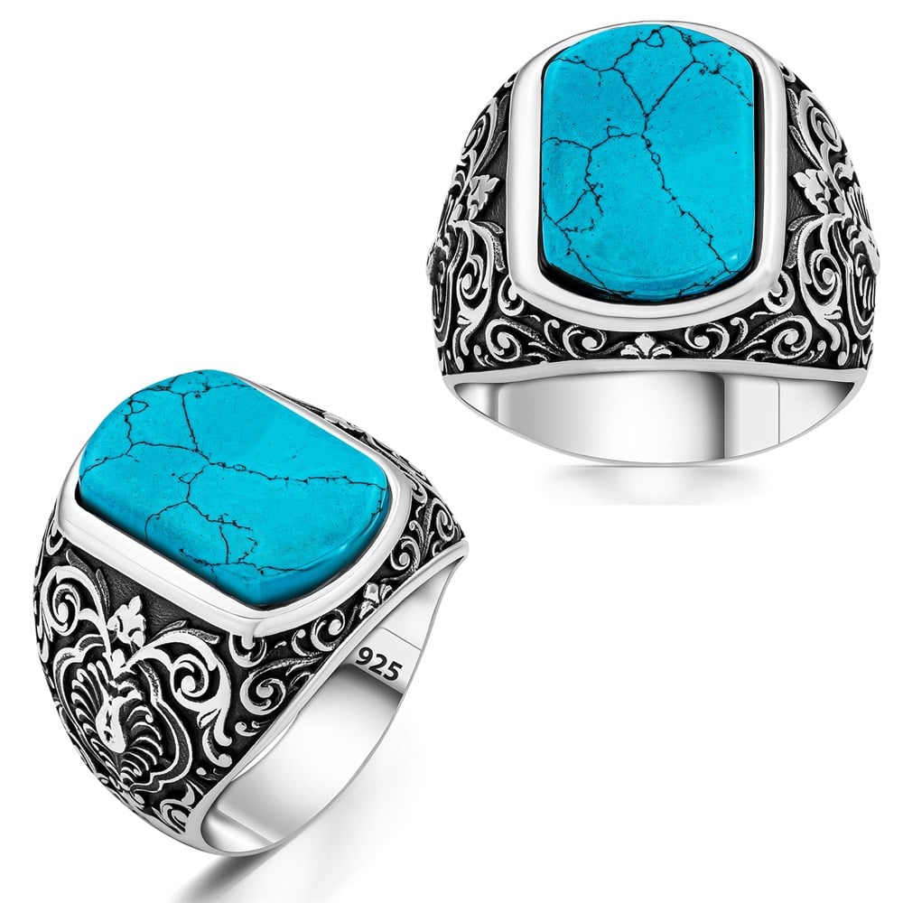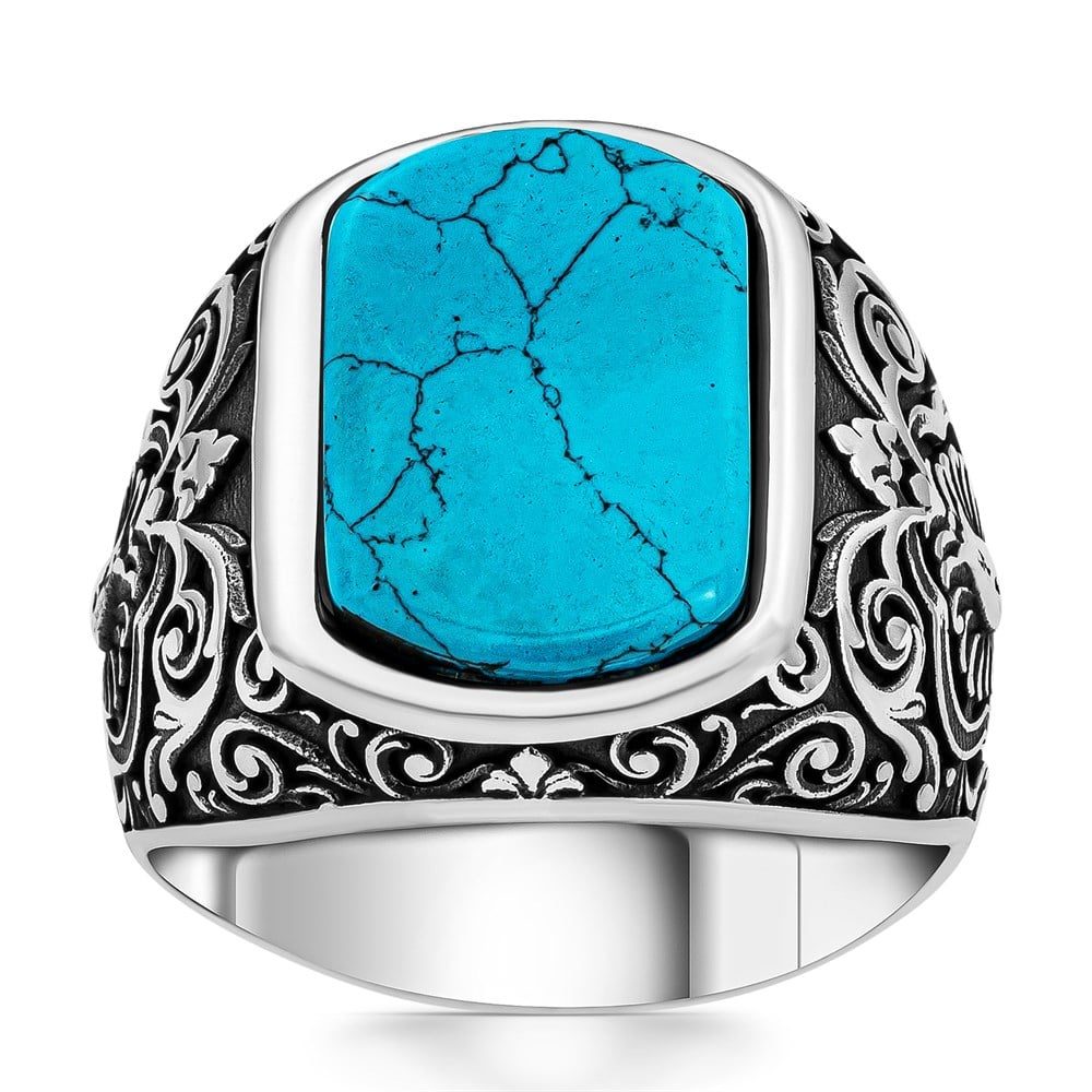 Selçuklu Motifli Firuze Taşlı Gümüş Yüzük (DEY1560F)