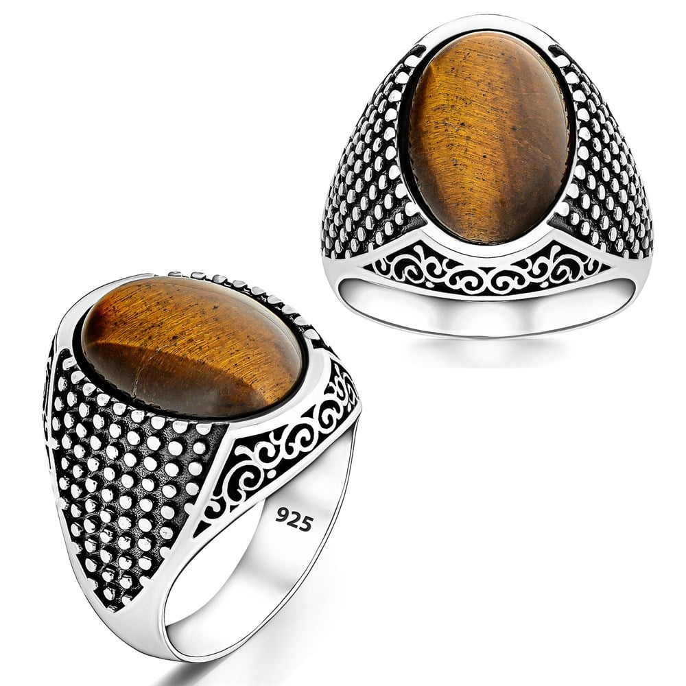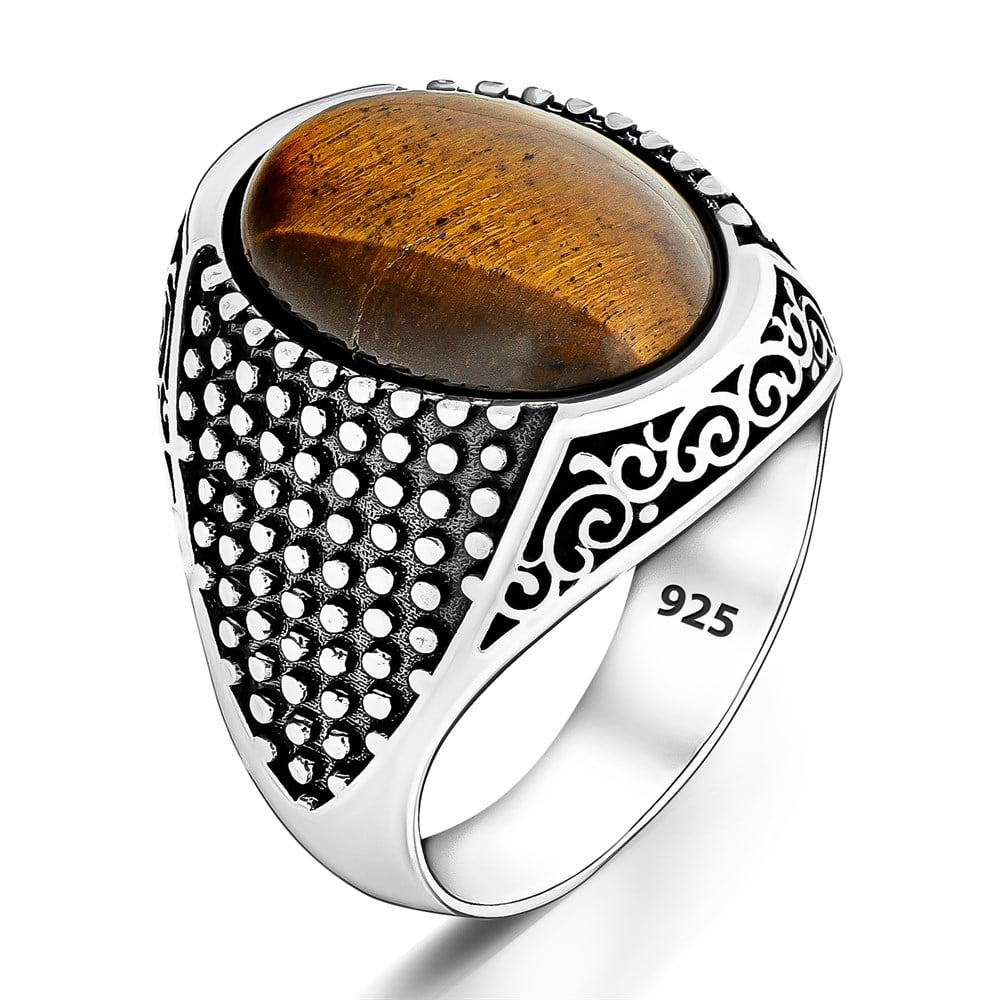 Silver Tiger Eye Ring, Handmade Tiger Eye Men Ring, 925 Silver Oval Tiger Eye Stone Ring, Gemstone Silver Ring For Men, Father Day Gift