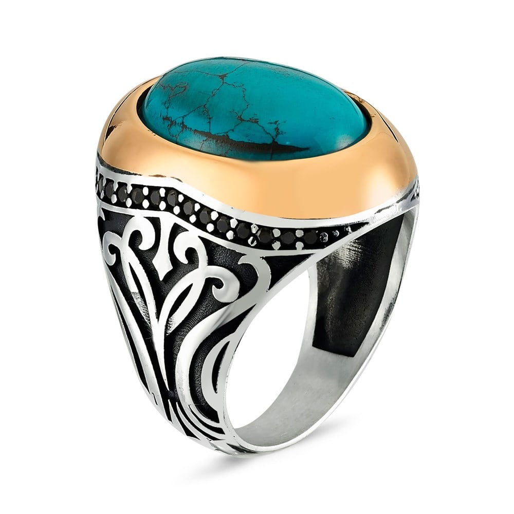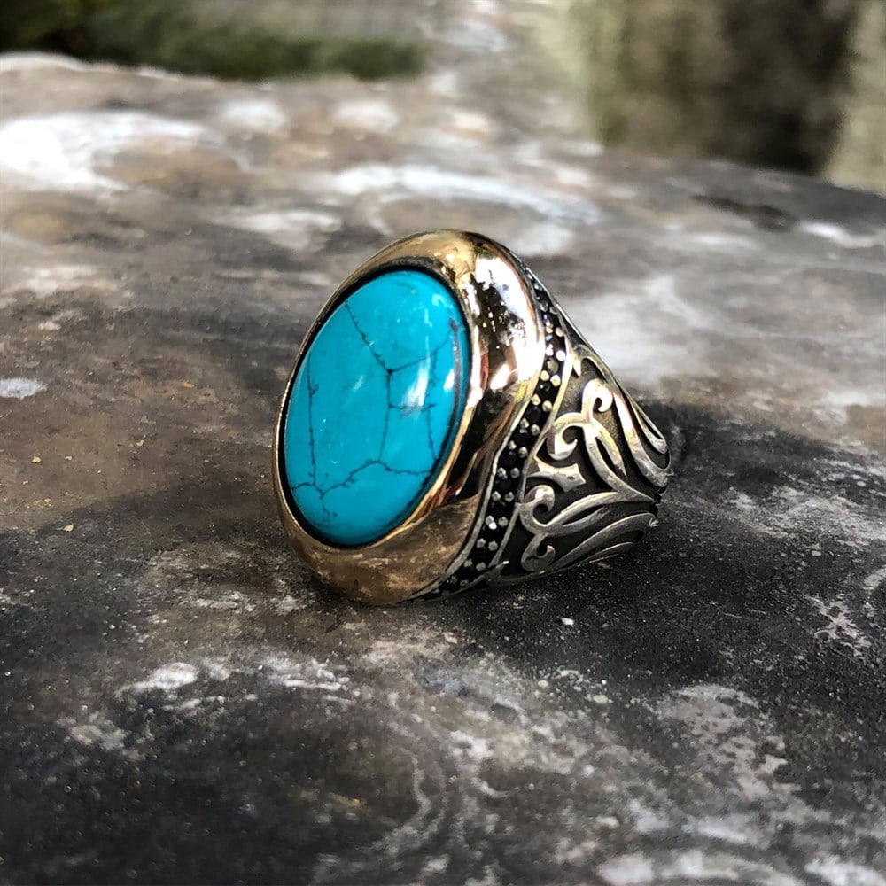 Turkuaz Taşlı Gümüş Erkek Yüzük