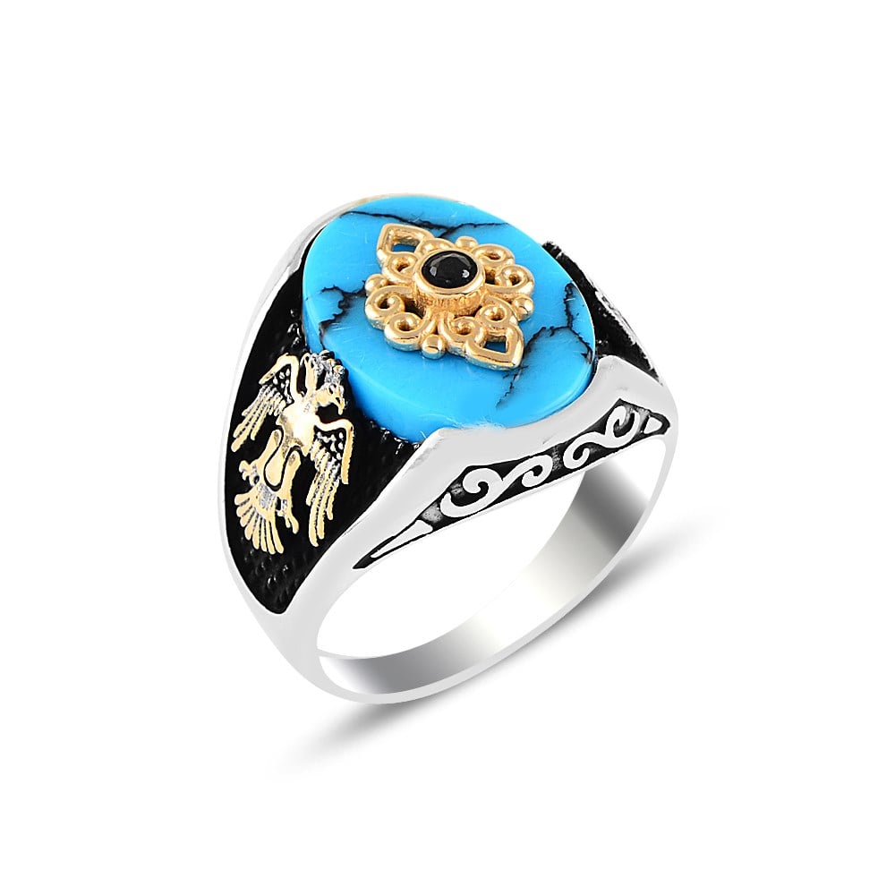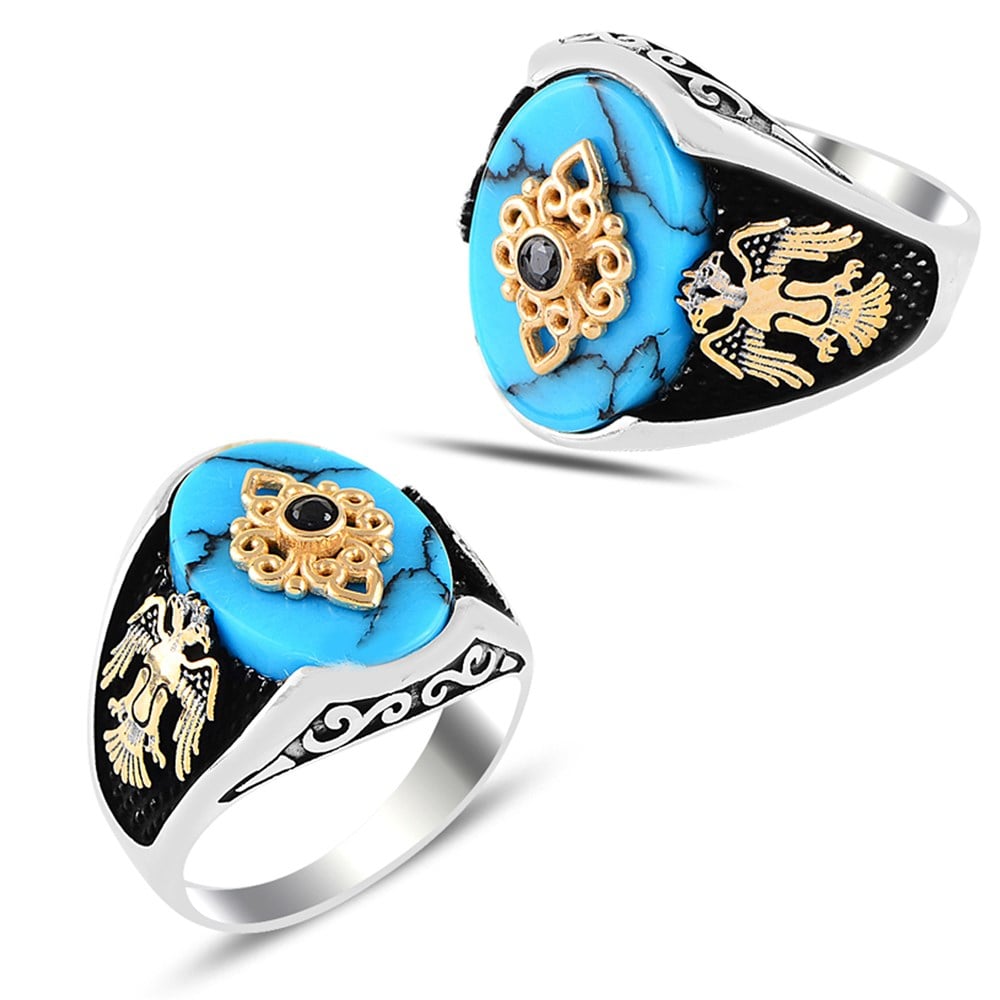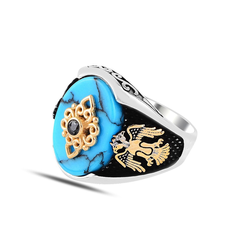 Turkuaz Taşlı Yanları Selçuklu Kartalı Motifli Gümüş Yüzük Özellikleri