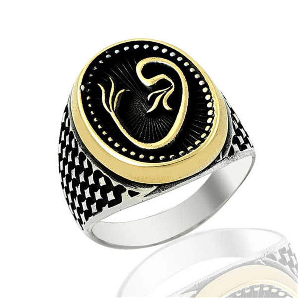 Vav Harfi Motifli Hasır Desenli Gümüş Erkek Yüzük (DEY0198)