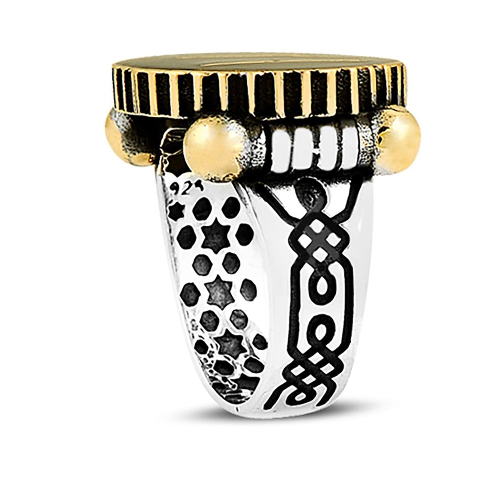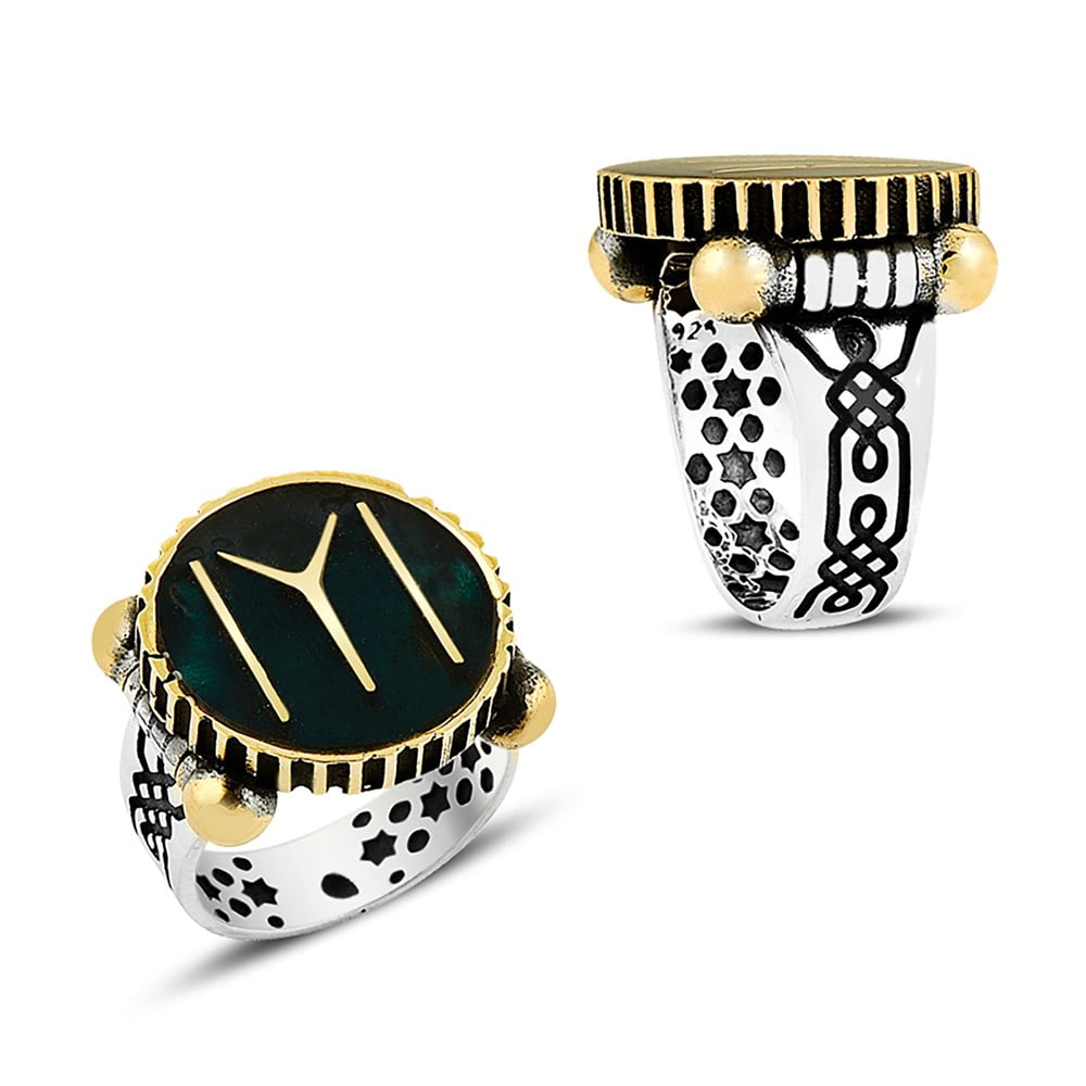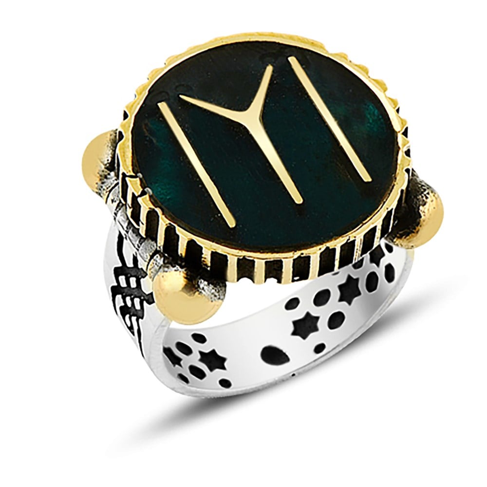 Yeşil Mineli Kayı Boyu Armalı Gümüş Yüzük (DEY1315)