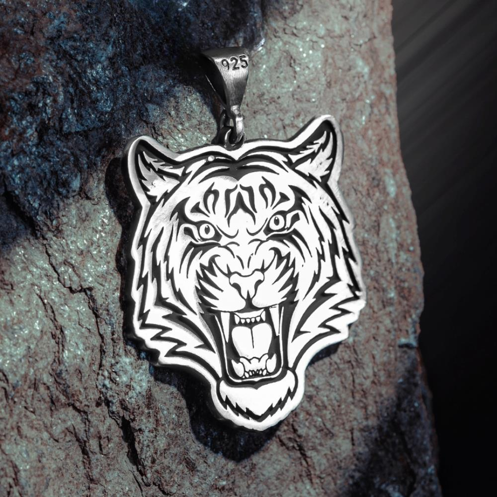 Kaplan İşlemeli Gümüş Kolye Ucu, gücün, cesaretin ve kararlılığın simgesi olan kaplan figüründen ilham alınarak tasarlanmıştır. 925 ayar gümüşten üretilen bu özel kolye ucu, detaylı el işçiliğiyle hazırlanmıştır. Güçlü karakterini ve kendine güvenen duruşunu yansıtmak isteyenler için mükemmel bir seçimdir. Hem günlük kullanıma hem de anlamlı bir hediye alternatifi olarak idealdir. Ürün zincirsiz gönderilir, yalnızca kolye ucudur.