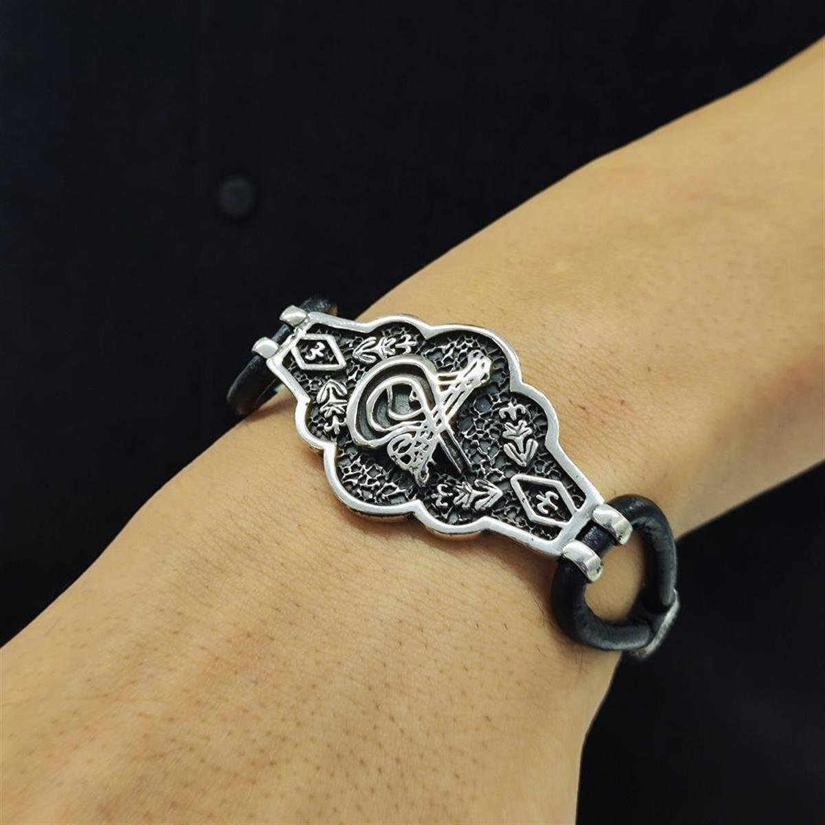 Osmanlı Tuğra Motifli Gümüş Erkek Bileklik (DBL0024)