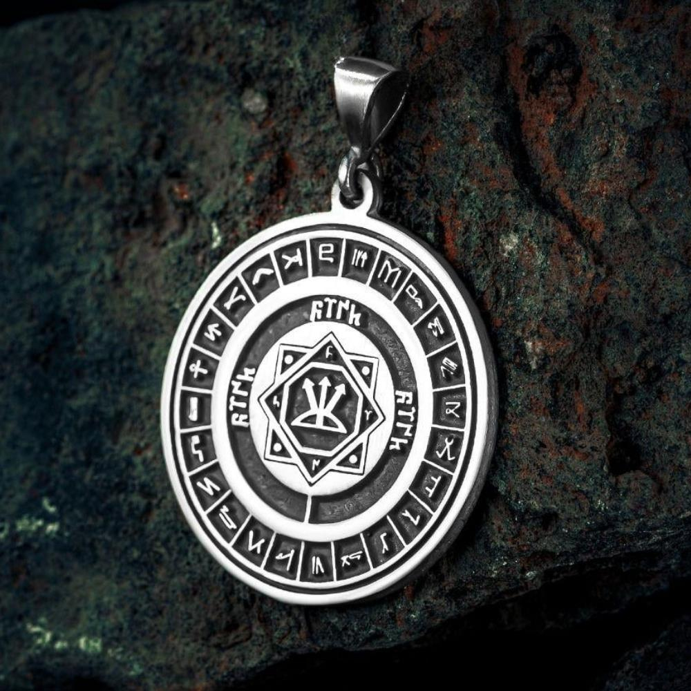 Türk tarihinin köklü sembollerini üzerinde taşıyan Türk Yazgısı Gümüş Kolye Ucu, 925 ayar gümüşten özenle üretilmiştir. Üzerindeki Oğuz Kağan mührü, 24 Oğuz boyunun tamgaları ve Göktürkçe “Türk” yazısı, geçmişin izlerini günümüze taşır. Hem anlamlı bir sembol hem de asil bir aksesuar olarak tarihine sahip çıkanlar için özel olarak tasarlanmıştır.